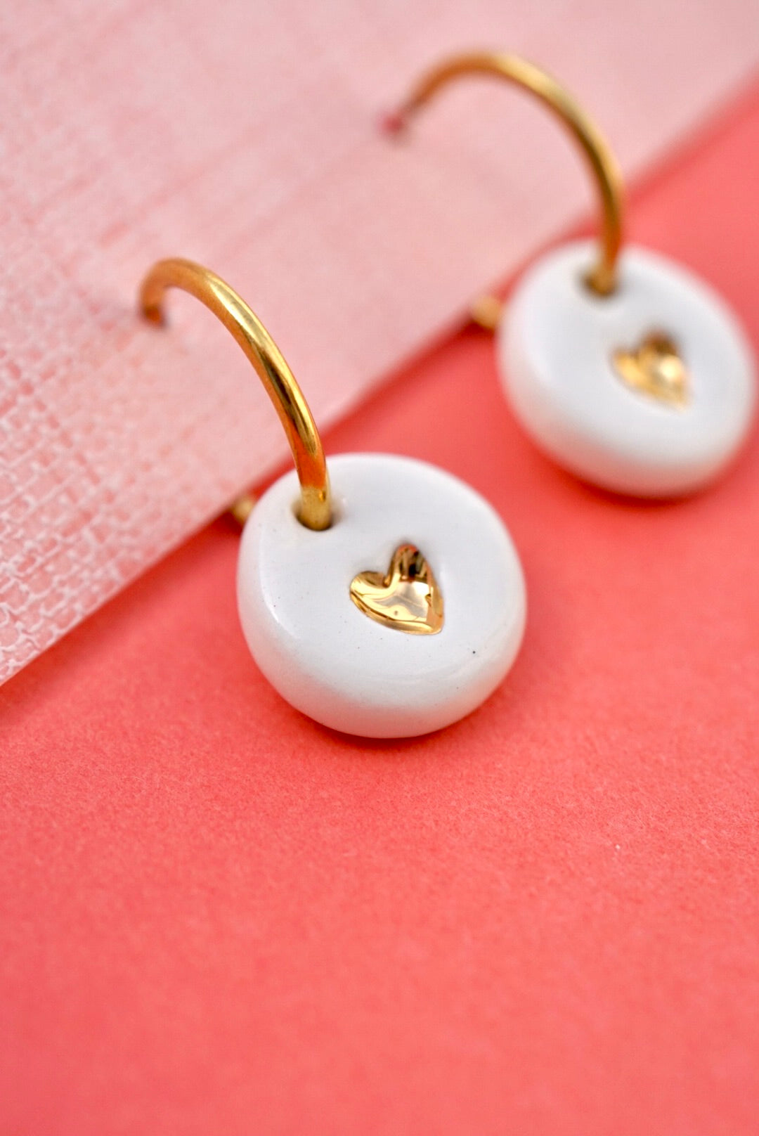 Pendientes de cerámica hechos a mano, decorados con lustre de oro.