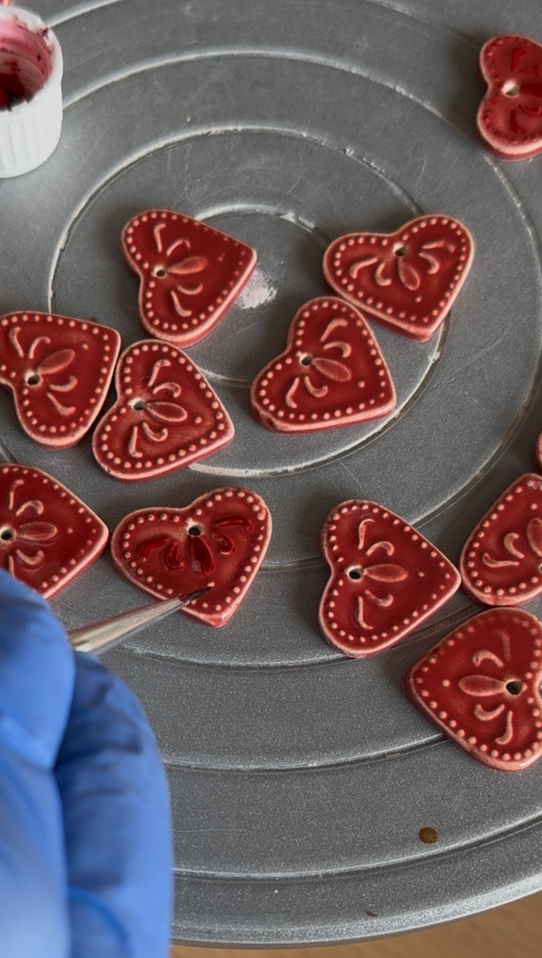 Corazón de cerámica hecho a mano decorado con lustre de oro.